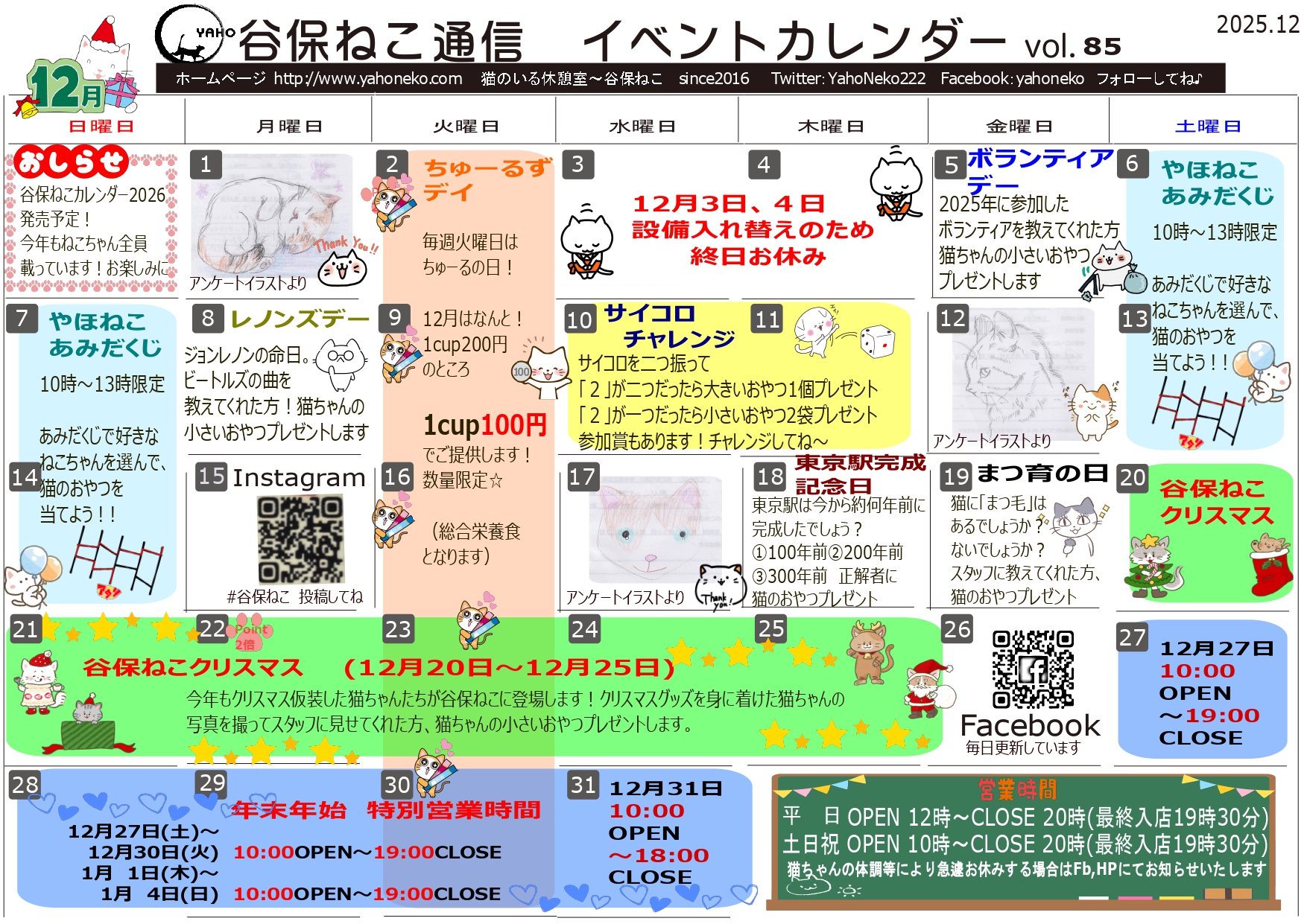 | 営業時間 | 平日 12:00~20:00 (最終入店 19:30) 土日祝日 10:00~20:00 (最終入店 19:30) ※猫ちゃんの体調や情勢により時短営業もしくは急遽お休みさせて頂くこともございます。 お休みの際にはホームページにてお知らせいたします。 |